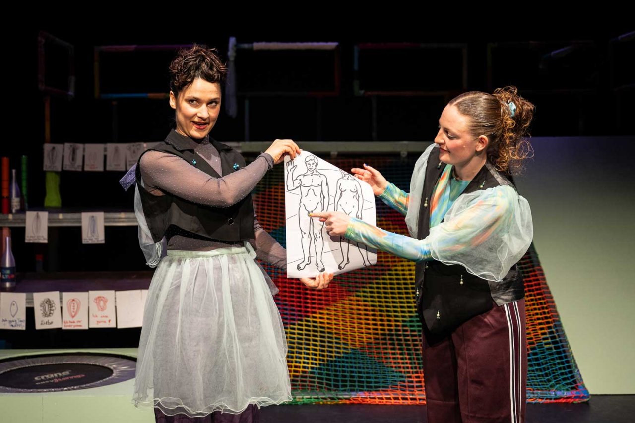 Mit Leichtigkeit zeigt „Der Ursprung der Welt“, wie absurd und tief verwurzelt patriarchale Strukturen die Vorstellungen von Weiblichkeit prägen. Das Stück nimmt uns mit auf eine Reise von der Antike bis in die Gegenwart, hält der Gesellschaft den Spiegel vor und lädt dabei zu einer besonderen Geburtstagsfeier ein – mal süß, mal sauer, mal hart, mal weich, so wie eine perfekt zusammengestellte bunte Tüte.
