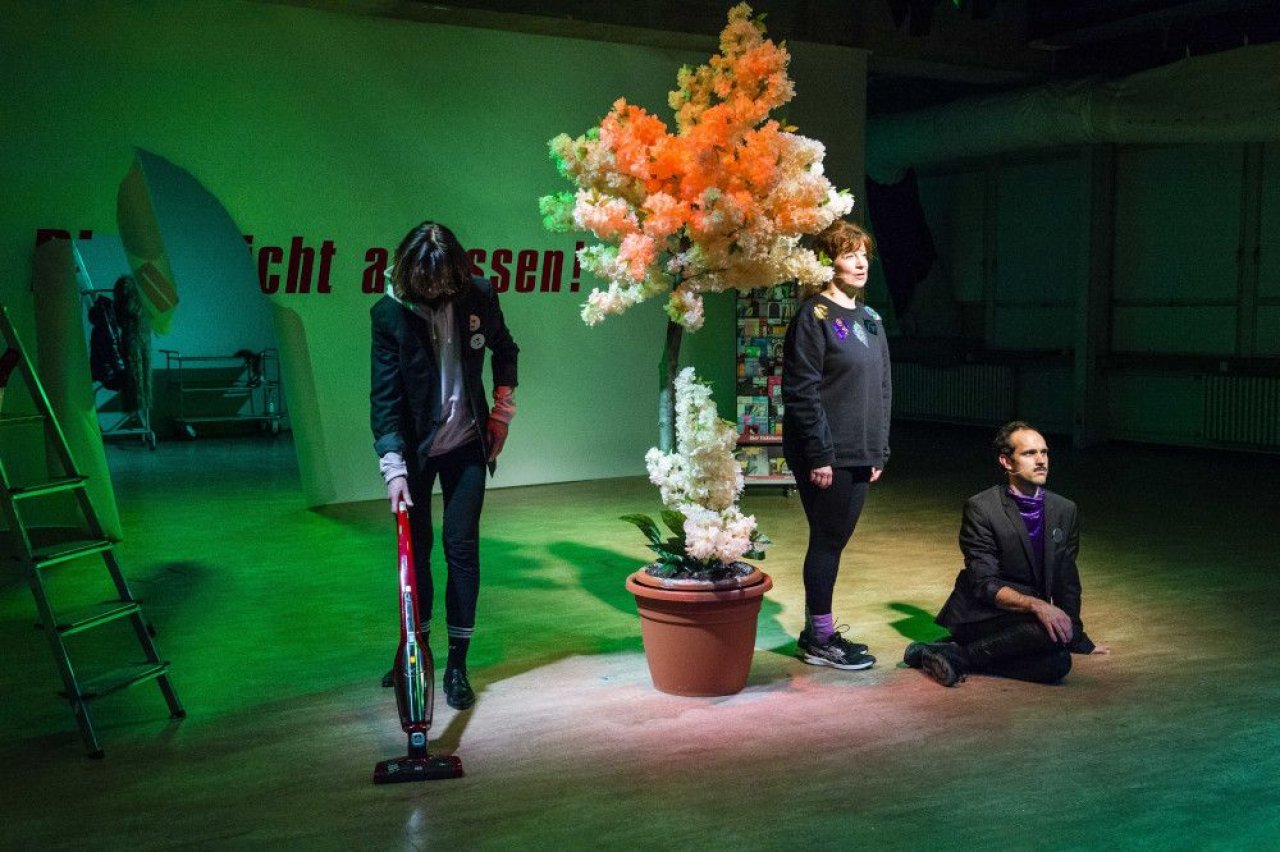 Erfolgsgeschichten bestimmen die Art, wie wir reden und denken: kein Satz und kein Interesse, kein Blick, keine Geste und kein Gefühl, die nicht daraufhin überprüft werden. Wie können diese Erzählungen umgeschrieben, oder ihnen die Bedeutung entzogen werden? Mit Hilfe verlorener Worte, bemühter Witze, filmischer Hyperrealitäten und musikalischer Melancholie versuchen drei Performer*innen auszubrechen und den Ideen von „gelungenen Biographien“ etwas entgegen zu stellen. Aber soll das überhaupt gelingen?