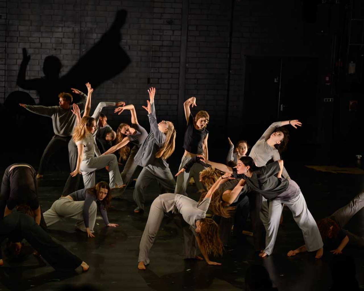Zwölf junge Performer:innen dekonstruieren Körper- und Stimmtexte, entwickeln eigene Songs und Choreografien und schreiben damit ihre jeweils eigene Komposition. Sprache wird als lebendiger Organismus verstanden, der sich fortwährend transformiert. Das Projekt erforscht Praktiken des „Sich-Riskierens“ auf der Bühne – ästhetisch wie gesellschaftlich.