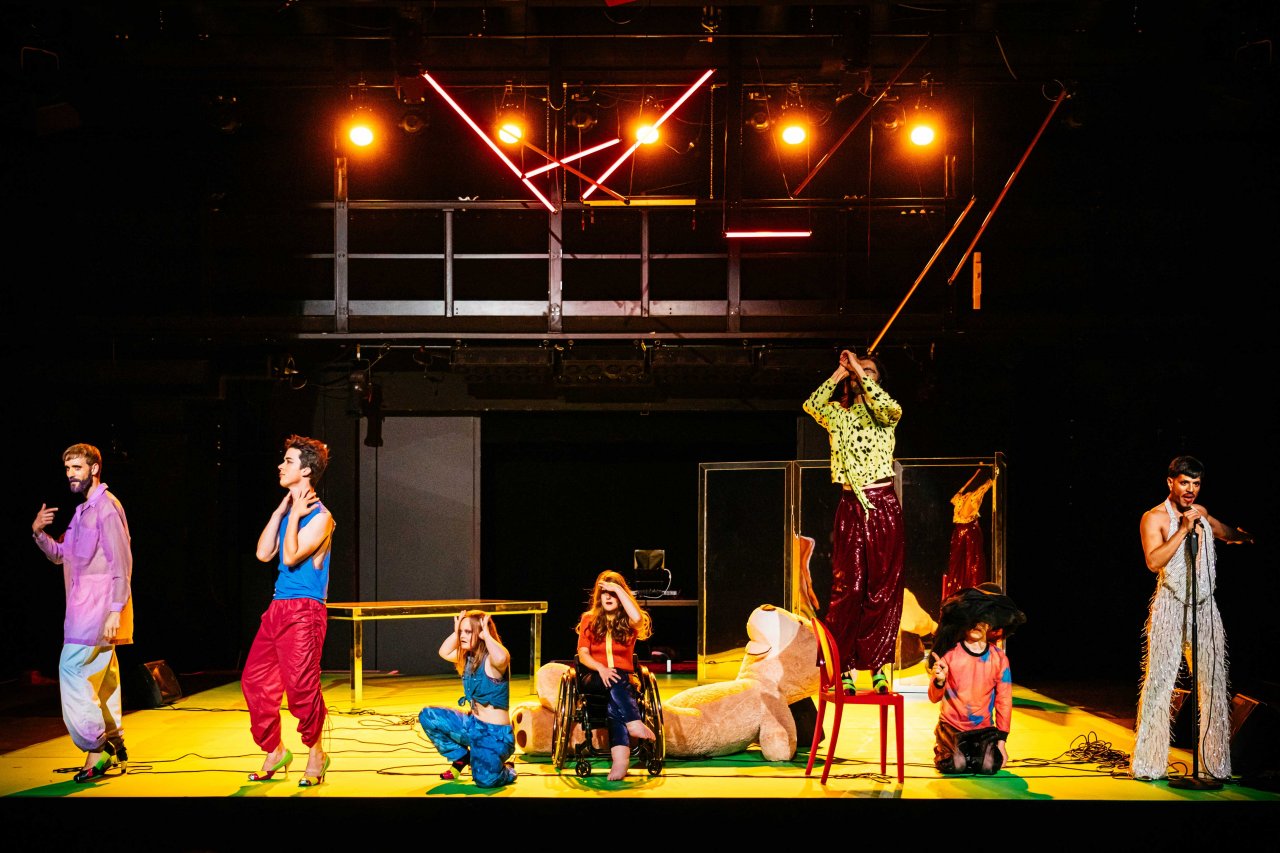 Das Thema Gender ist ein weiteres und elastischeres Feld, als man sich vorstellen kann. Es geht über das Körperliche, über die soziale und biologische Sphäre hinaus. „NO NAME – das Muxical“ spielt auf unterschiedliche Weise mit dem Thema und hebt dabei einige wichtige Aspekte besonders hervor. Es ist die zeitgenössische Vision eines Musicals mit einem mixed-abled Tänzerensemble. Queer und Verspieltes, Stimme und High Heels, all das ist zu verschieden und eigen, als dass es in eine einzige Schublade passen, mit einem einzigen Begriff benannt werden könnte. „NO NAME – das Muxical“ Ist eine Einladung ins Unbekannte für diejenigen, die glauben, dass Rosa – oder Pink - ausschließlich für Mädchen und Blau für Jungen gedacht ist.