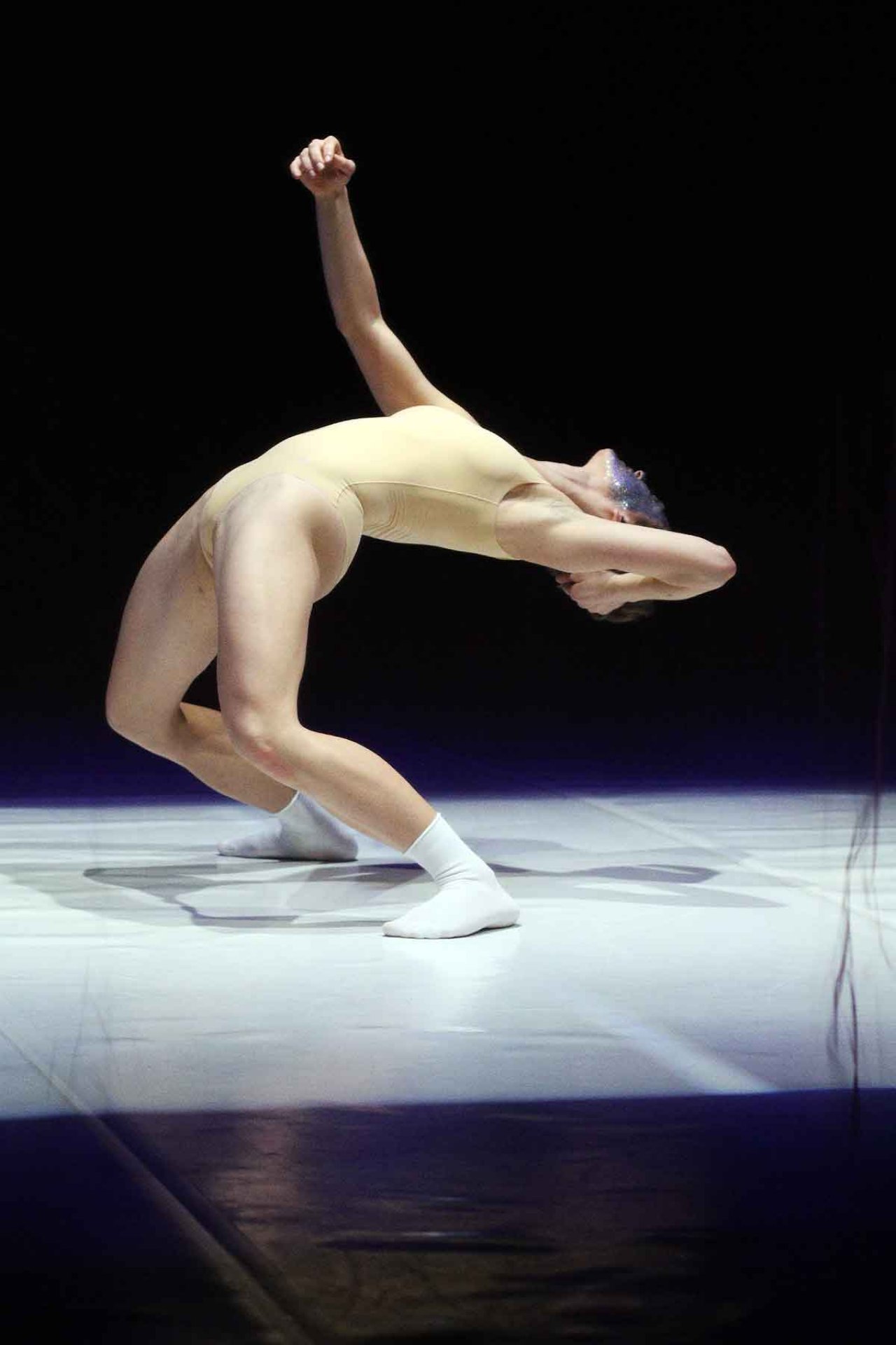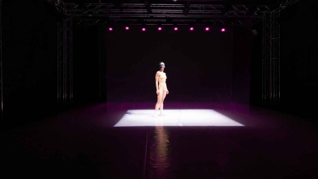 Alina Belyagina creates a sacrificial ritual with a socio-political view of the system of her native Russia and its victims. Her dance-solo is based on body reactions of victims and their nervous tics and fixation.