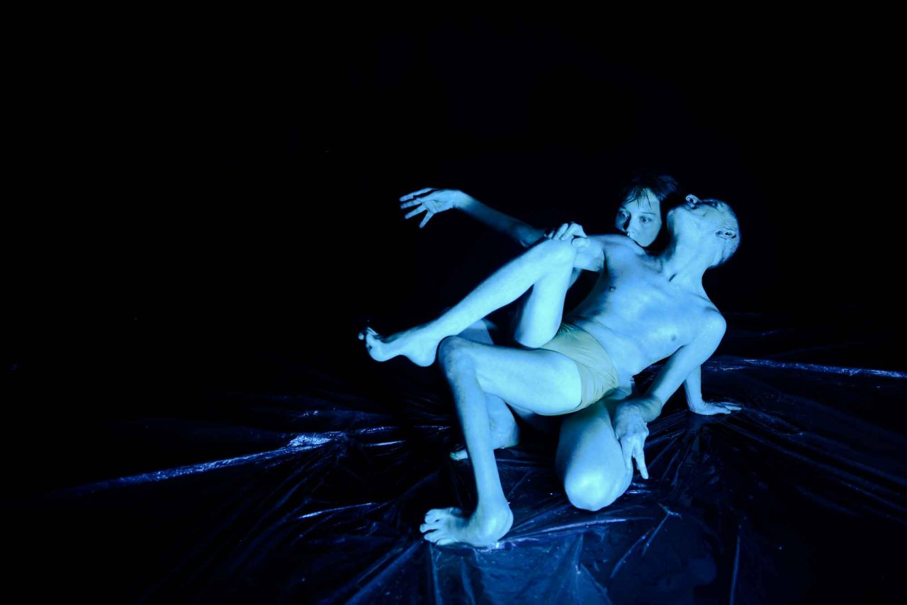 The mixed.abled dance duo of the Australian choreographer and dancer Renae Shadler and the German performer Roland Walter works with water, textiles and movement on stage. They focus on the question how warm water leads to wrinkles and muscle tension in the different nature of the physique. Three distinct bodies come closer - Renae, Roland and the water.