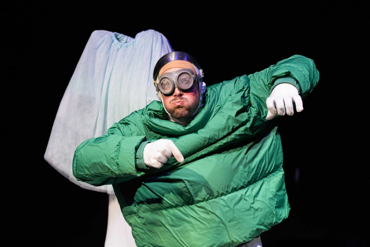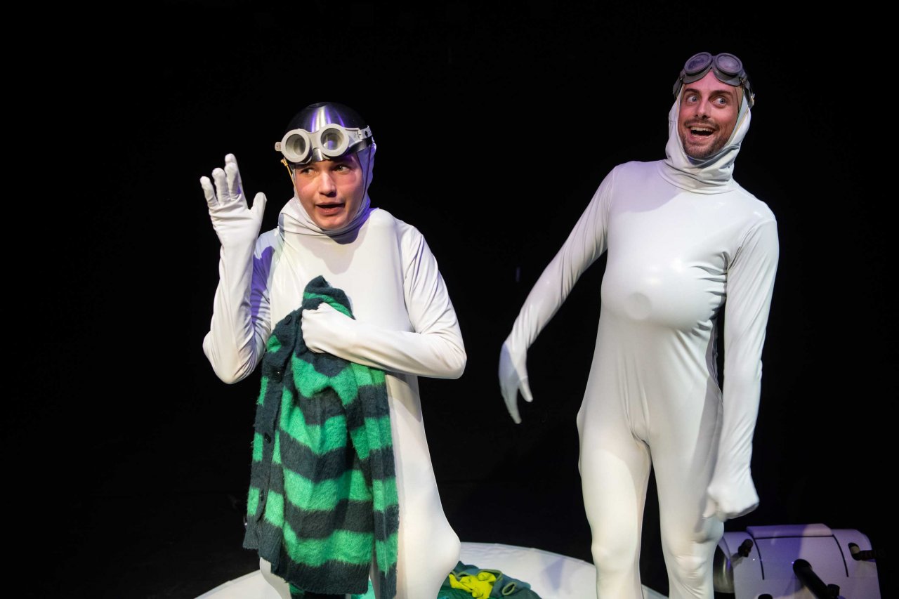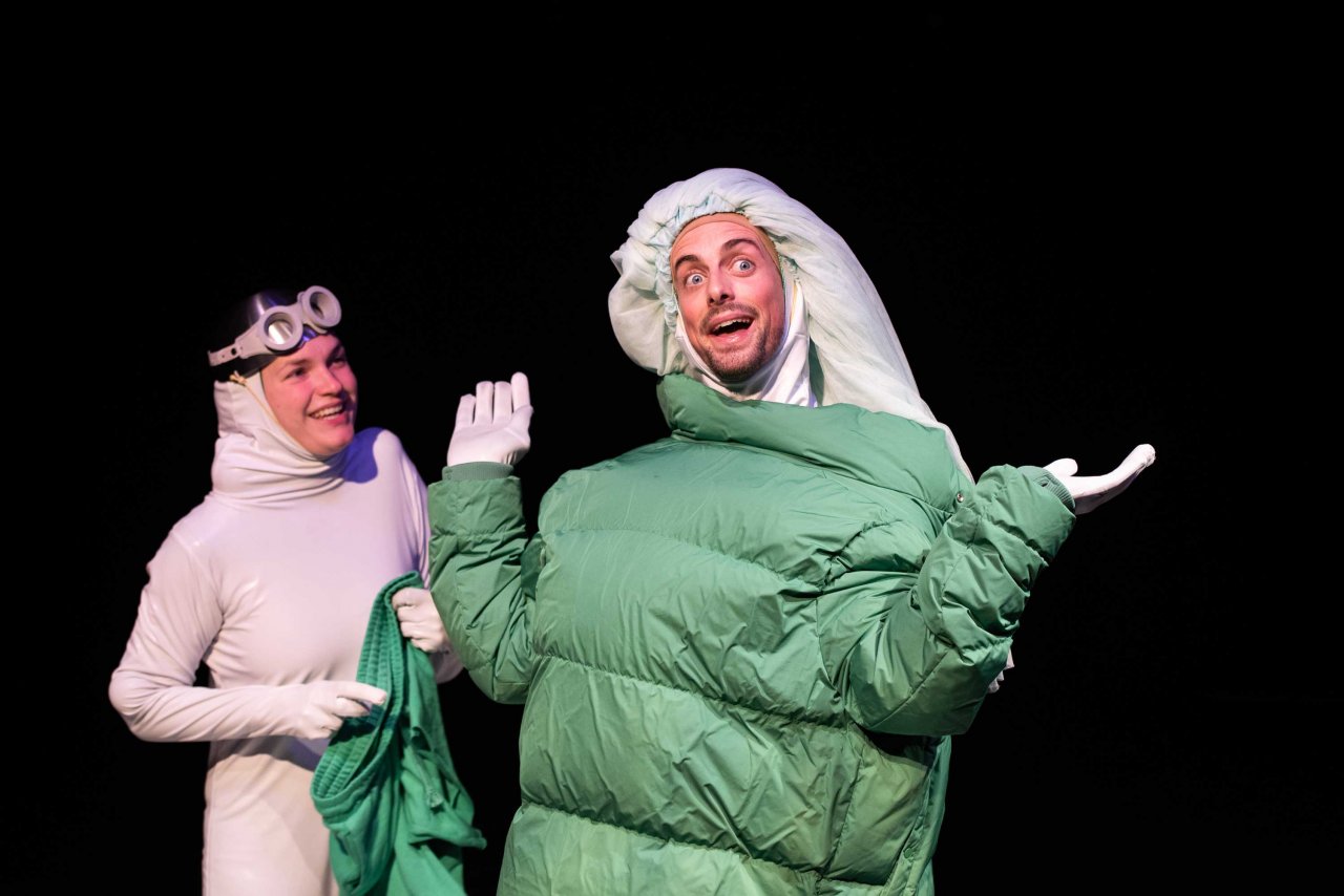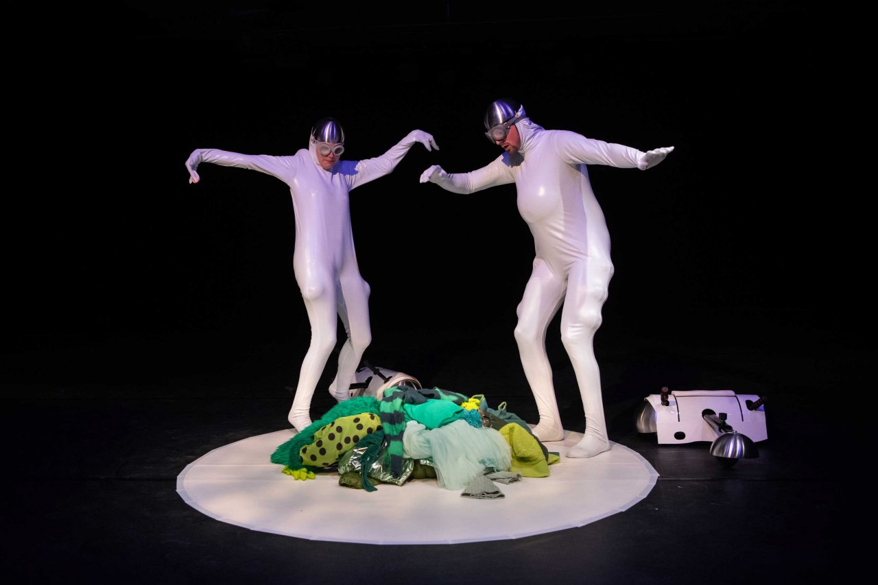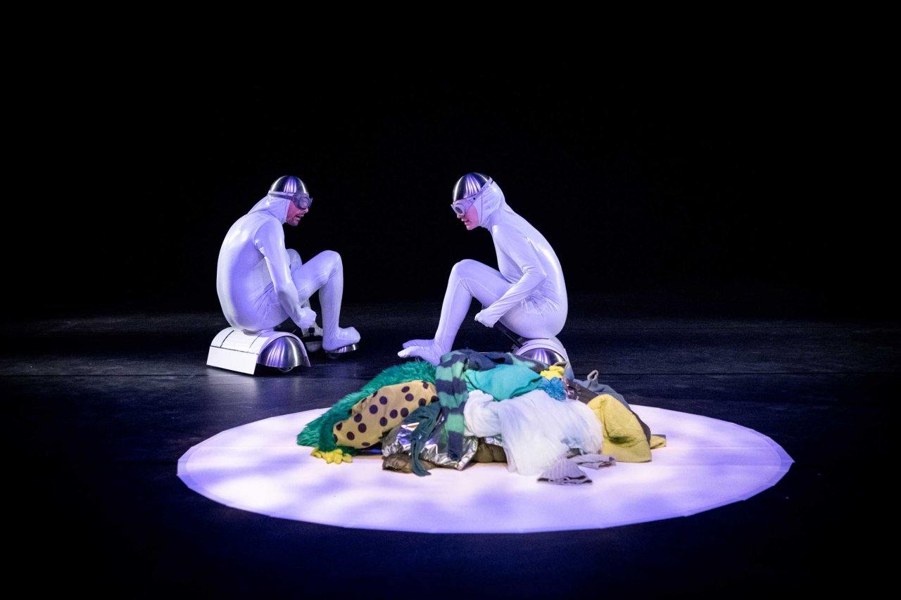 Was bin ich? Wer bin ich? Was kann ich sein? Poetisch und eigenwillig skurril werden Hürden des alltäglichen Anziehens erforscht und erweitern dabei spielerisch die Fantasieräume der kleinen aber auch der großen Zuschauenden.