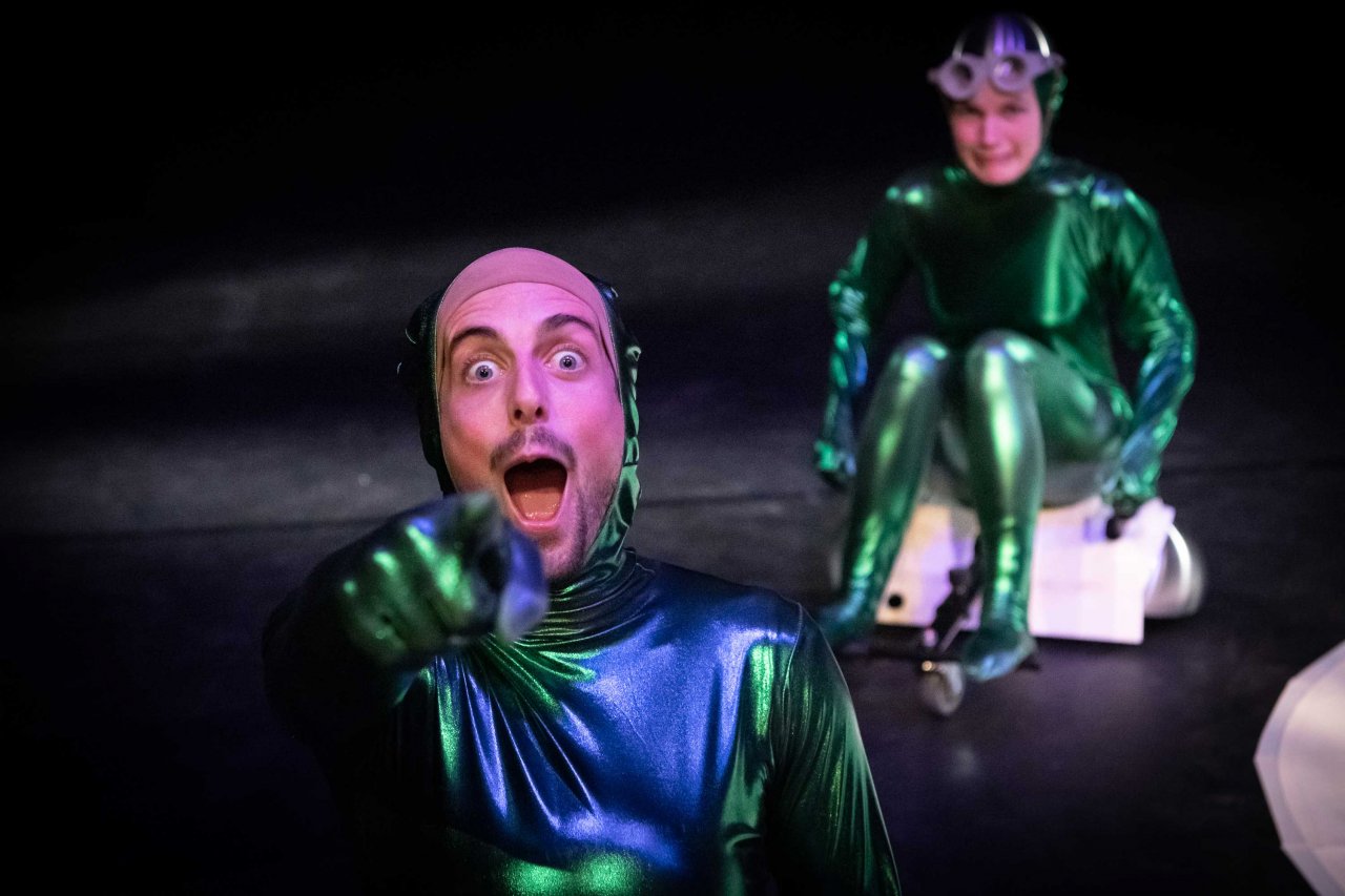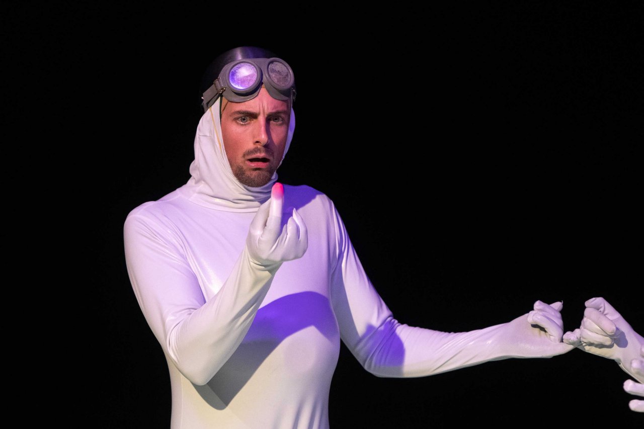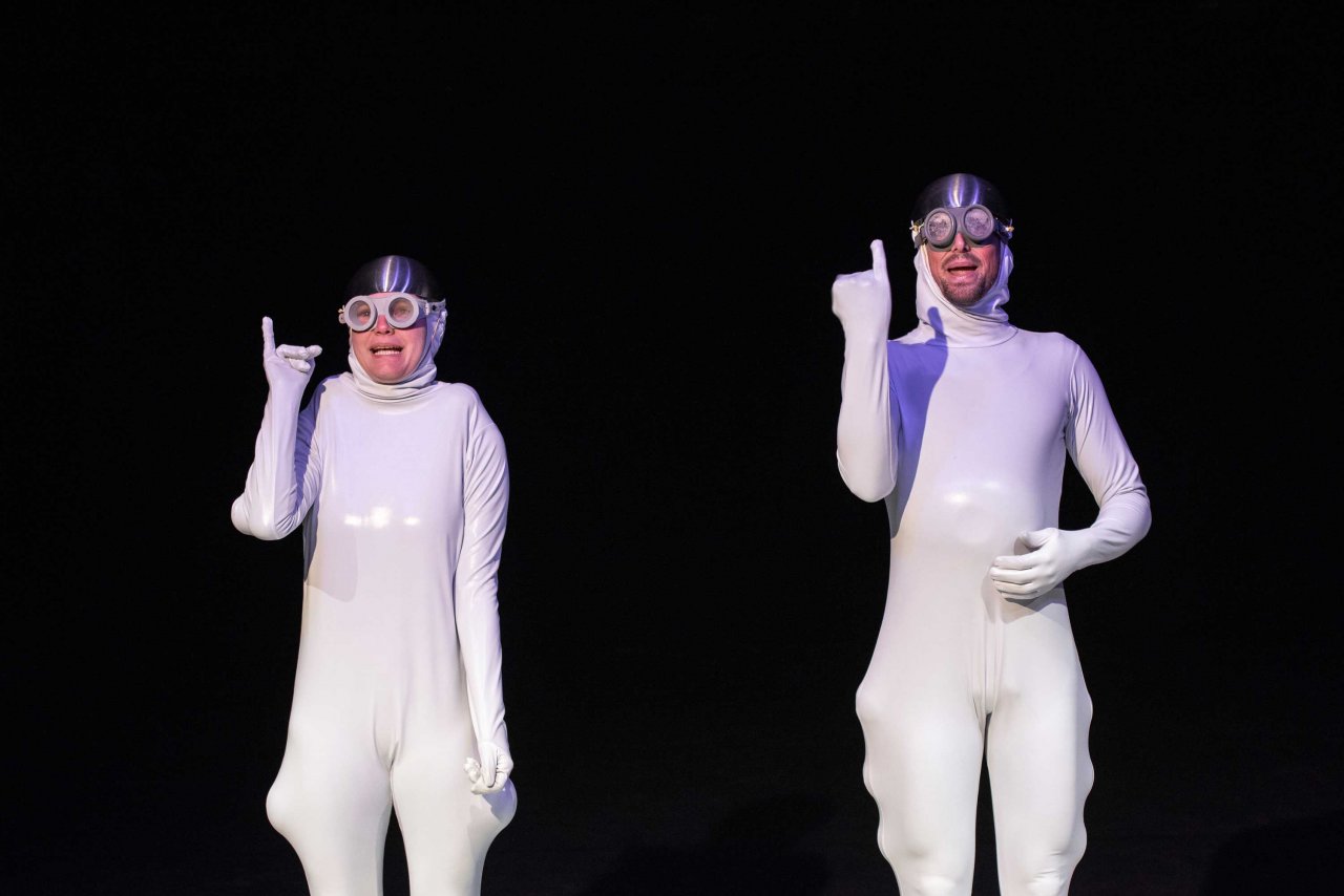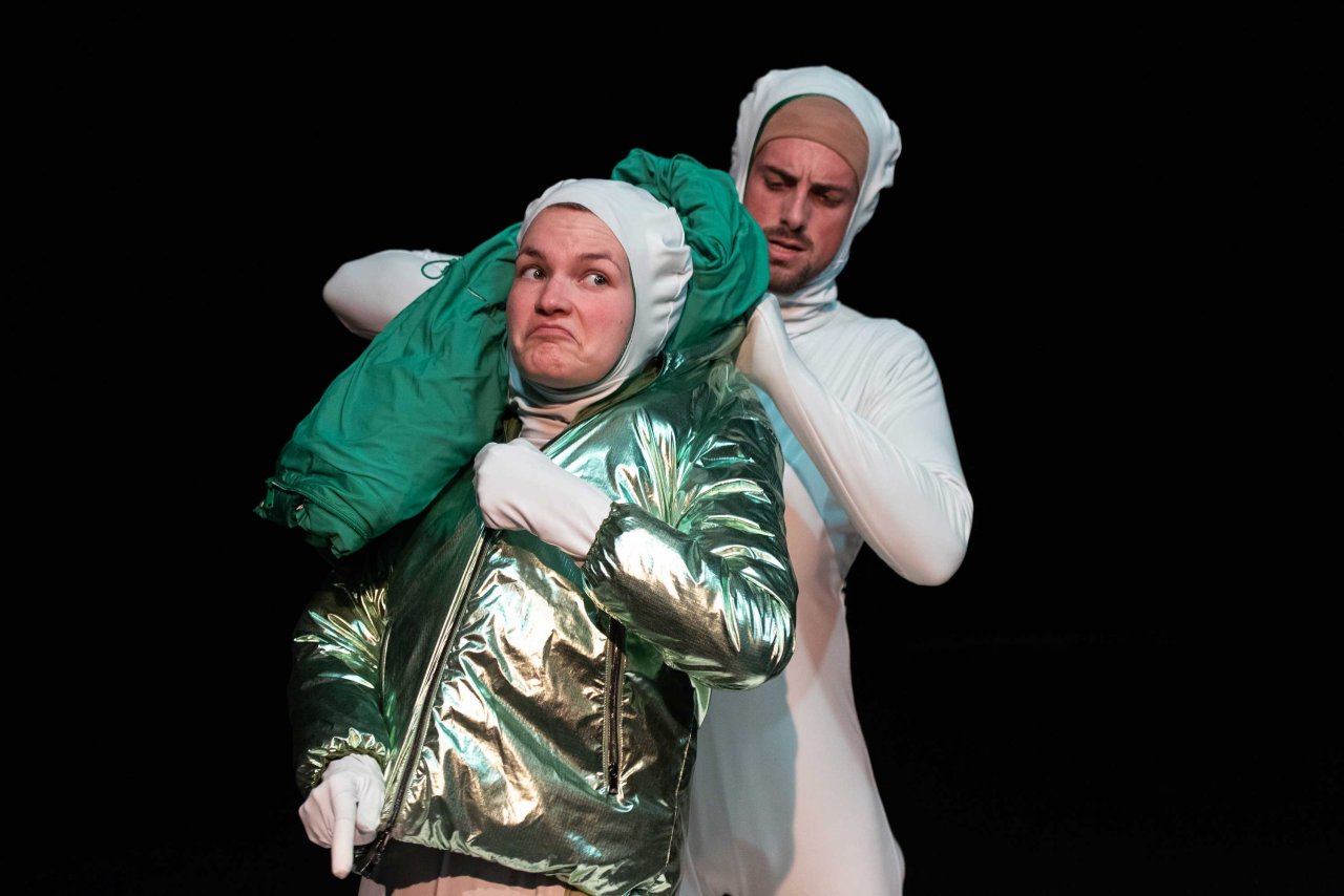 Was bin ich? Wer bin ich? Was kann ich sein? Poetisch und eigenwillig skurril werden Hürden des alltäglichen Anziehens erforscht und erweitern dabei spielerisch die Fantasieräume der kleinen aber auch der großen Zuschauenden.