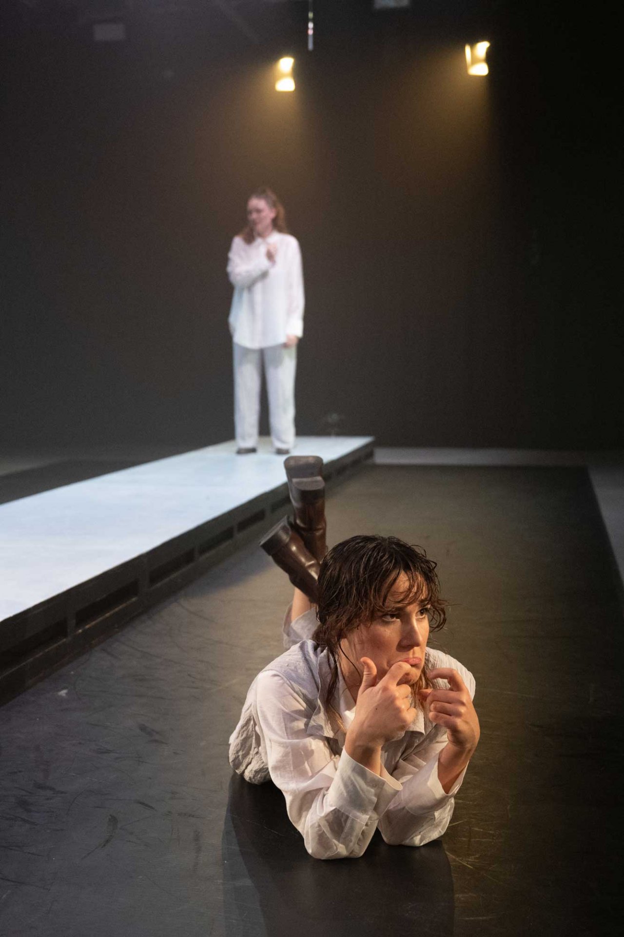 In der Inszenierung von frau emma gelb steht der Blick auf zwischenmenschliche Beziehungen, die Kraft der Selbstreflexion und die Auseinandersetzung mit den eigenen Taten im Mittelpunkt. Die Zuschauenden werden zu Objekten des Dramas, sie beobachten, werden beobachtet und müssen sich zu den Blicken der anderen verhalten.