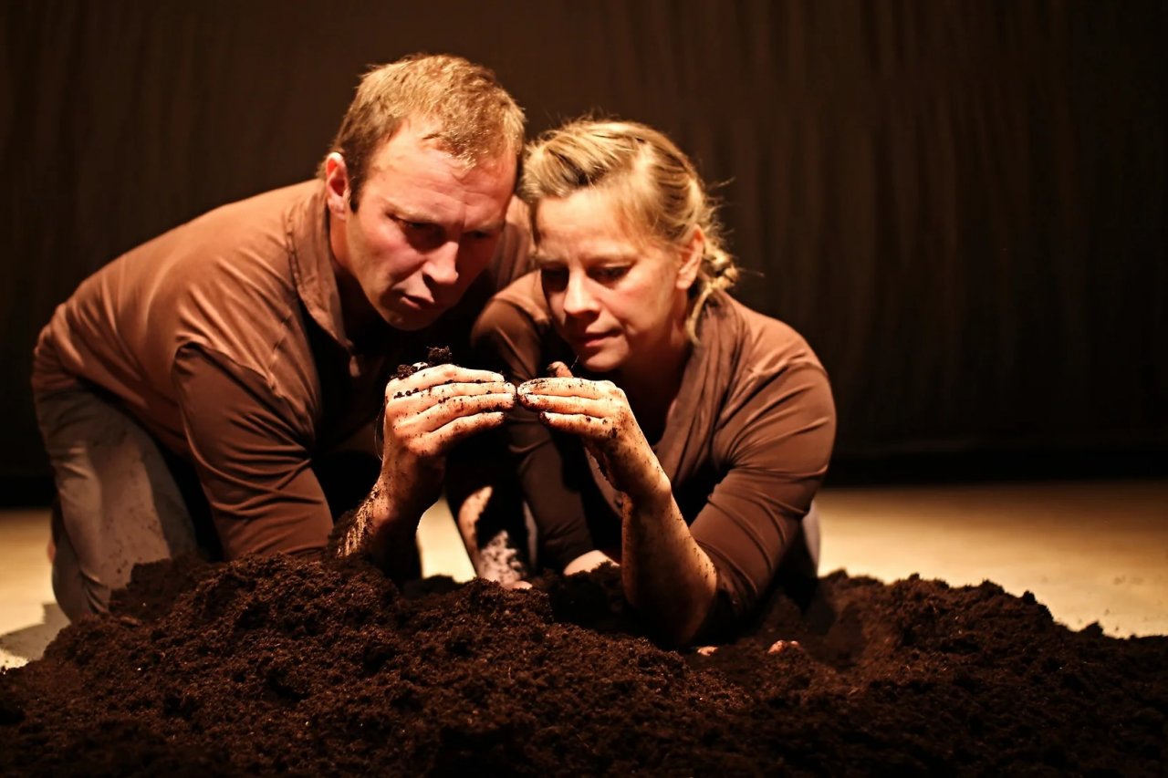 Zwei Gestalten kommen aus dem Schatten und finden einen Sack Erde: Sie erschaffen Tiere, Länder, Leben und Liebe daraus. Erzählt wird die Geschichte der Erde und die Schöpfung der Menschheit. »Life – a MudPie« zeigt spielerisch und ganz ohne Worte, wie alles auf der Welt aus dem Nichts entsteht: ein